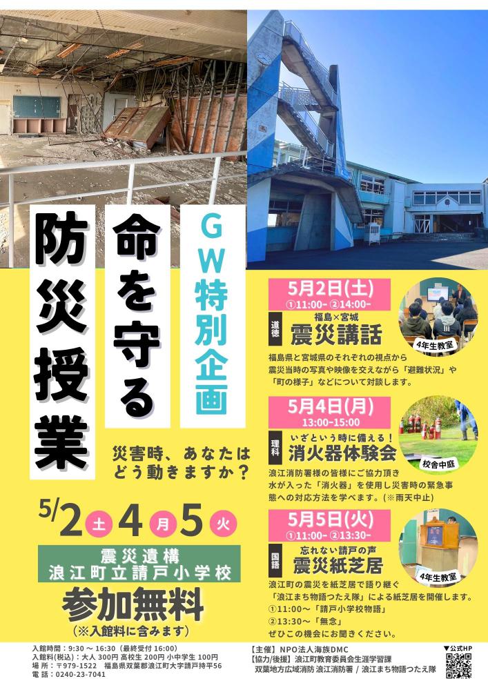 震災遺構 請戸小学校で、『GW特別企画 命を守る防災授業』を開催!